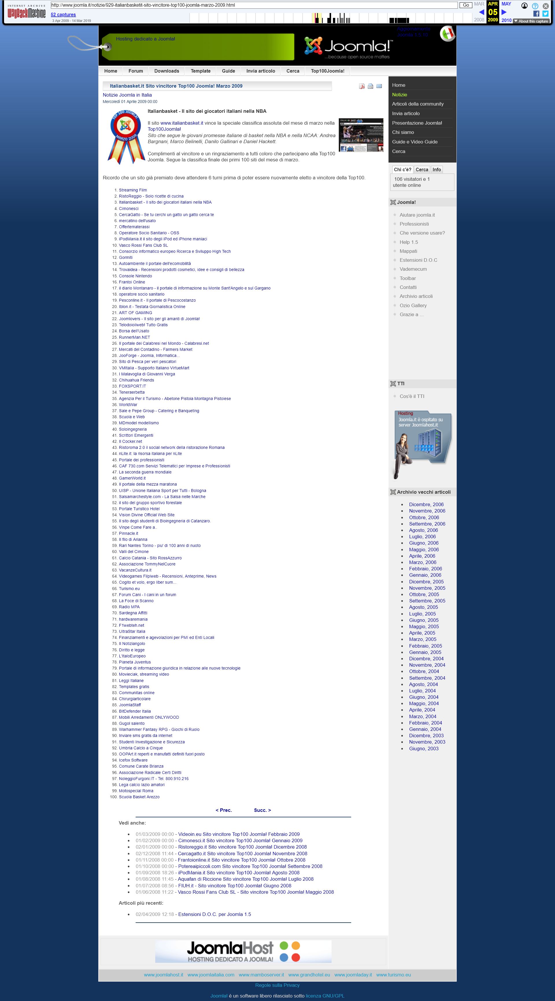 Il sito www.italianbasket.it vince la speciale classifica assoluta del mese di marzo nella Top100 Joomla! Son piccole soddisfazioni.